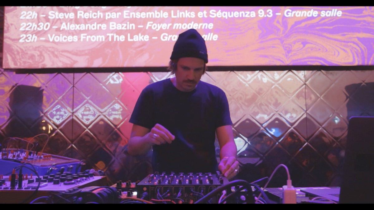It’s Friday so we’re listening to something more upbeat. Today we’re listening to Alexandre Bazin, a French electronic music producer based in Paris. Bazin has been influenced primarily by dance music from Britain and Berlin.1 In his own music he practices a kind of recursion, sampling his own electronic production, and then looping and distorting it to interesting effect. His latest album, Innervision, came to our attention via a closer listen’s newsletter. The record’s ten tracks play beguiling synth loops over distorted, disintegrating drums. We’re also playing Concorde from 2021, which is more subdued and features more acoustic instrumentation.