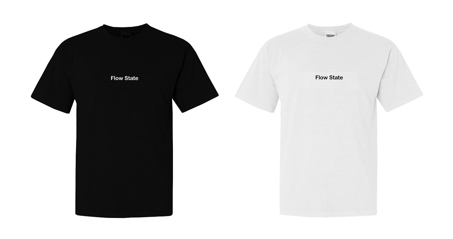 Flow State T-shirtsMay 15, 20211ShareGood evening.We made T-shirts, which you can buy here.Ships only within the U.S. for now.Show Me the ShirtsPreviousNext