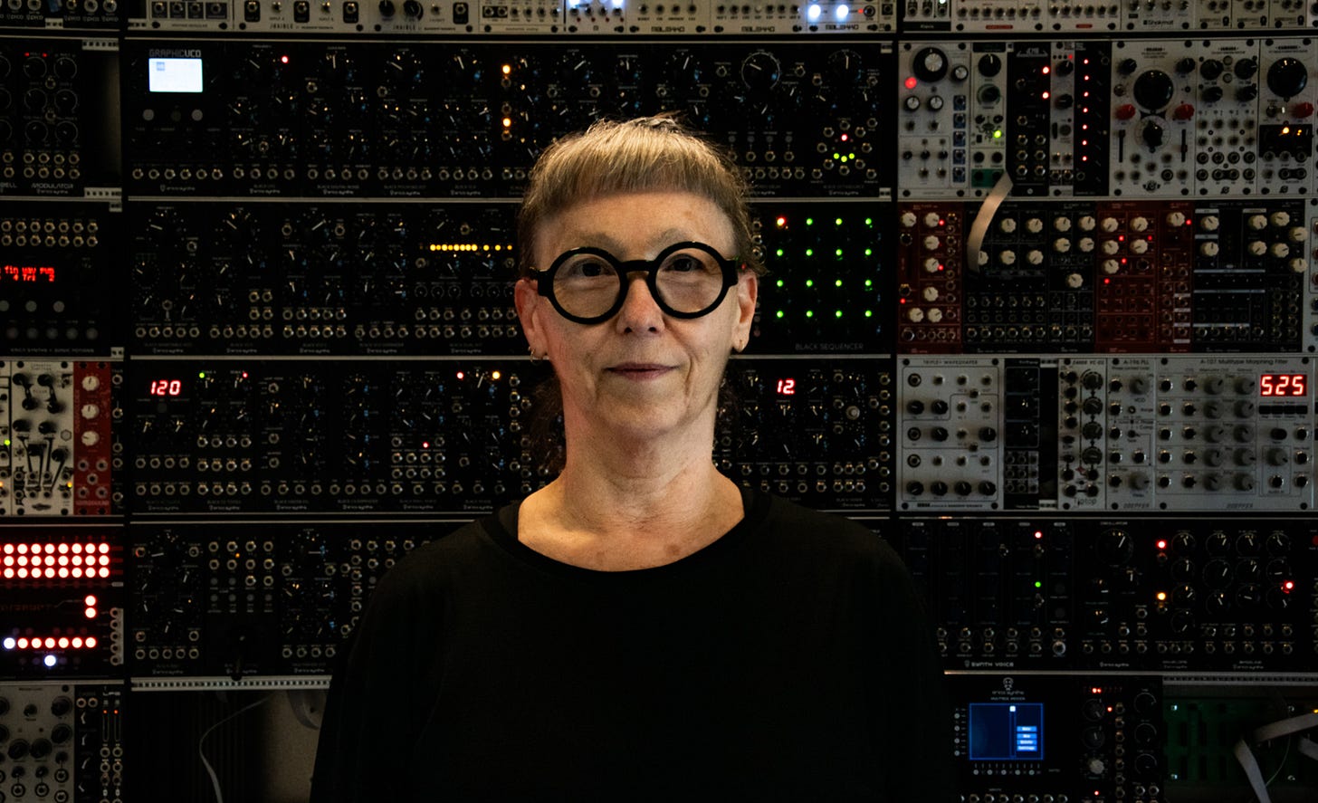 Today we’re listening to France Jobin, a Canadian sound artist and composer based in Montreal. She grew up in Quebec City and studied classical piano, eventually gravitating towards the sonic freedom of electronic instruments.1 Her work has been described as “sound sculpture,” an apt description because Jobin incorporates physics concepts into her work, specifically from quantum mechanics and string theory.2 We’re first playing her 2017 LP, Scènes, which is as ambient as ambient music gets. It’s four longform pieces recorded on modular synthesizers: Serge, Buchla 200, and Nord Modular. We’re also playing her 2024 record, Infinite Possibilities (Particle 1), whose two ~20-minute tracks shapeshift substantially.